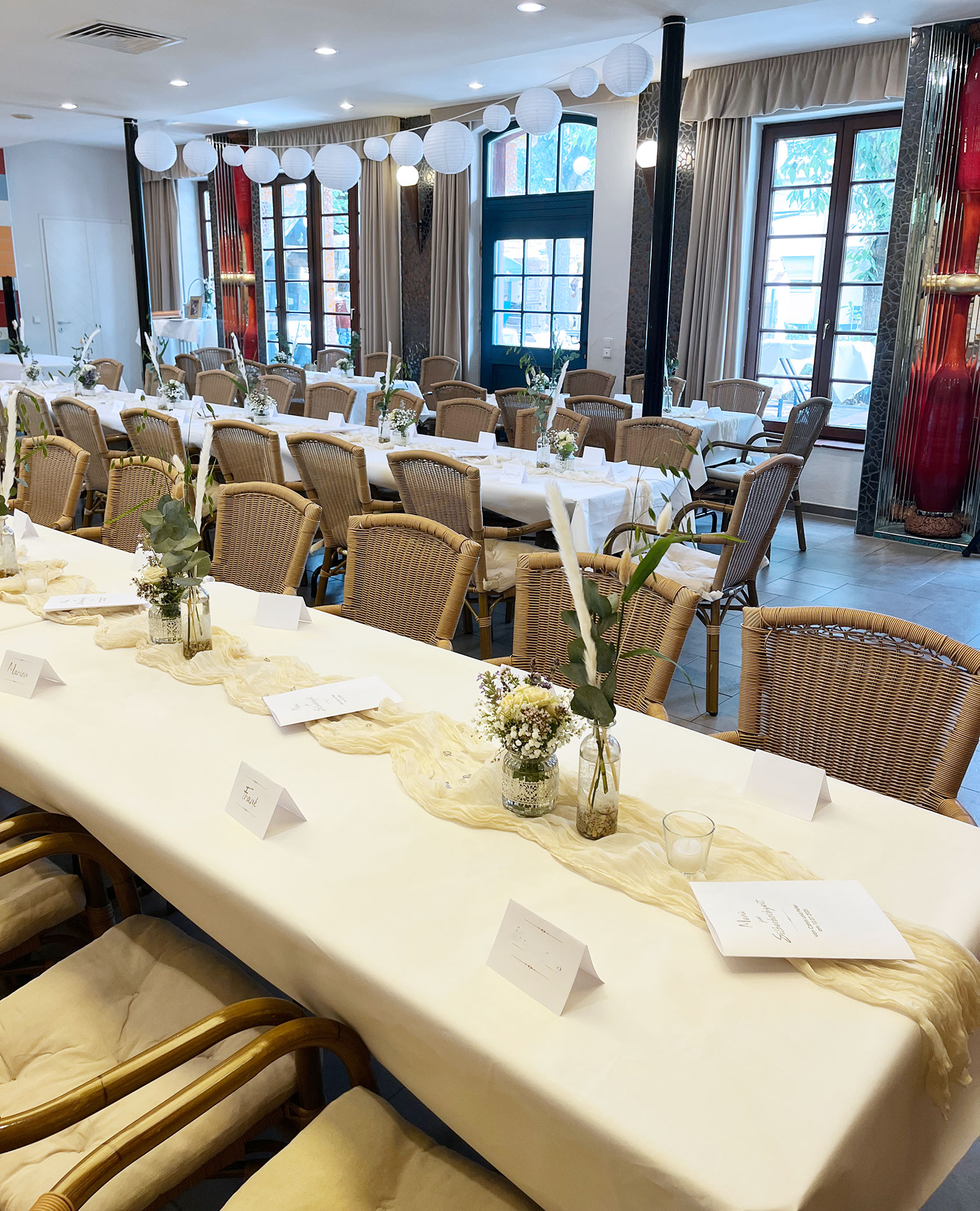 Unsere Ausstattung lässt wenig Wünsche offen und lässt gleichzeitig Raum für Ihre kreative Ideen um eine individuelle Feier zu gestalten.